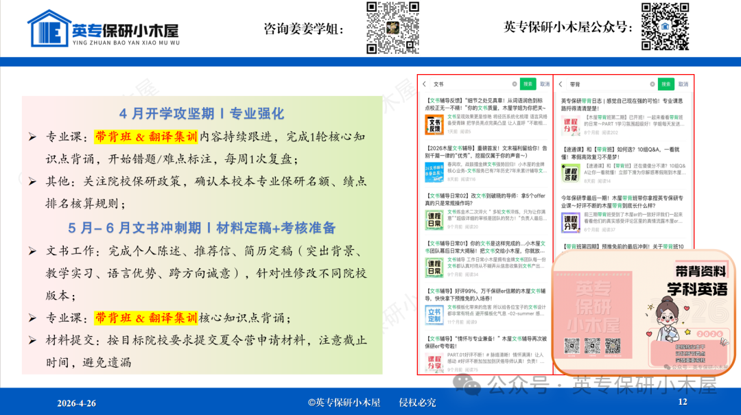 学长将从4月开学攻坚期讲起,一直到5-6月文书冲刺期,手把手带你梳理准备过程✍️。从专业课的王蔷《英语教学法教程》带背、新课标深度研读到课外拓展,到个人陈述的“人设塑造”、推荐信和简历的打磨,再到夏令营材料的精准投递,学长会把他一路升级打怪的经验全部分享给你!锁定讲座,get学科英语保研保姆级时间管理攻略,让你的备考之路清晰又高效!😻