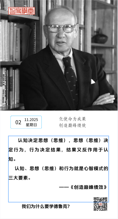 德鲁克认为未来最大挑战不是技术或经济变化而是组织与个人思维模式的转变他以多年顾问经验指出无论营利或非营利机构核心困难在于突破固有认知实现思维革新