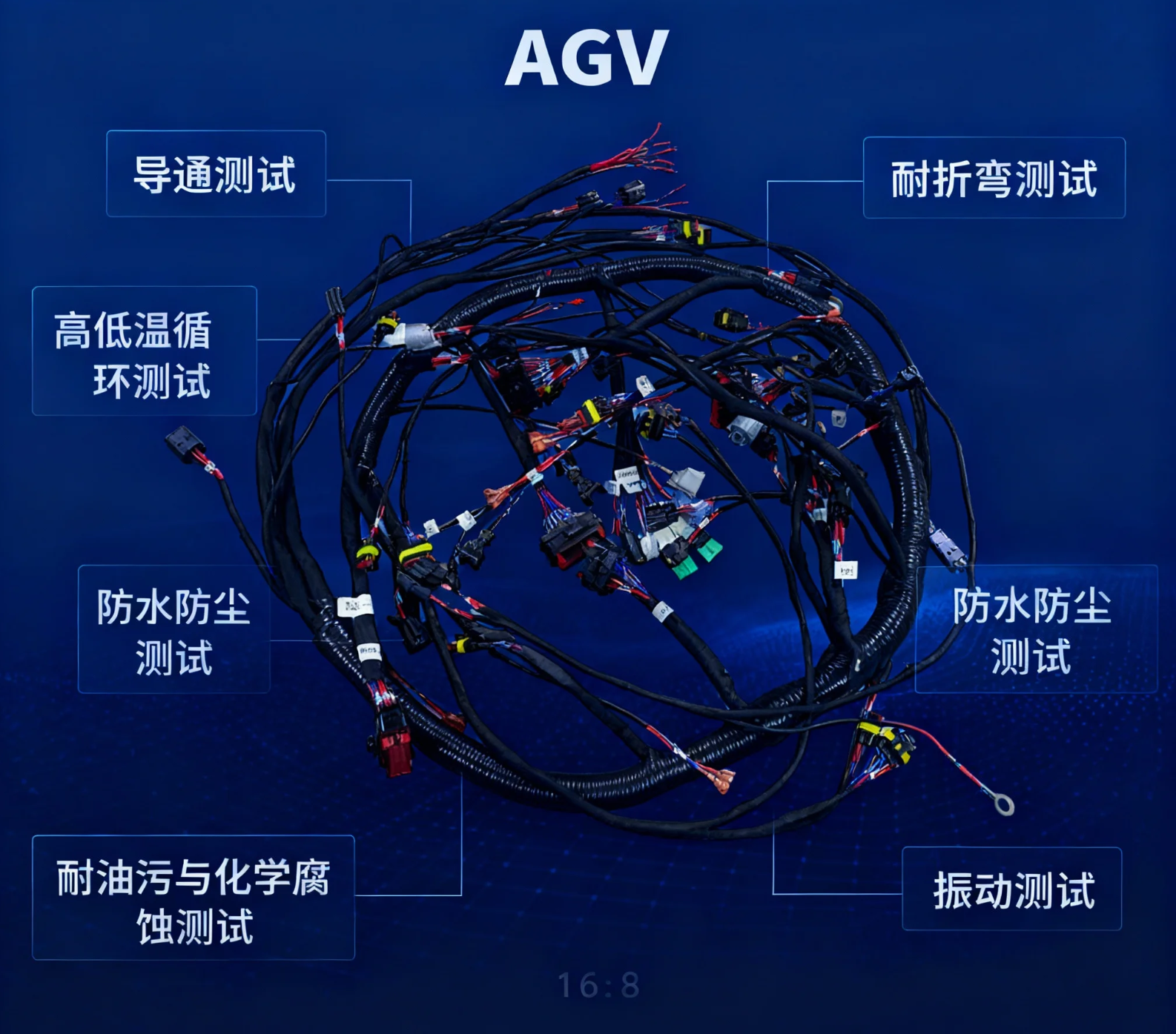 丰乐电子AGV专用线束通过六项严苛测试,确保复杂工况下稳定运行,守护AGV高效作业。
