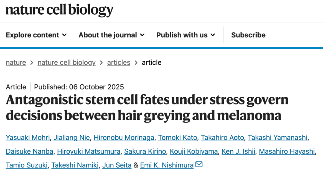 你是否曾为突然出现的白发而烦恼?是否认为白发只是岁月无情的痕迹?2025年10月6日,东京大学团队在《Nature Cell Biology》发表的一项研究彻底颠覆了我们的认知:压力催生的白发,可能是身体对抗癌症的主动防御。