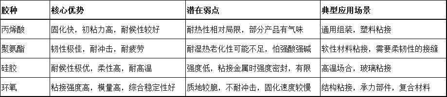 这也是为什么在航空航天、汽车、风电等要求极高的领域,结构胶首选往往是环氧体系。因为工程应用里真正的考验不是“能不能粘”,而是“能不能一直粘”。在应力、温度、湿度、老化这些多因素同时作用下,只有体系同时具备“强界面+强本体+能量稳定”三点,才能活得长久。