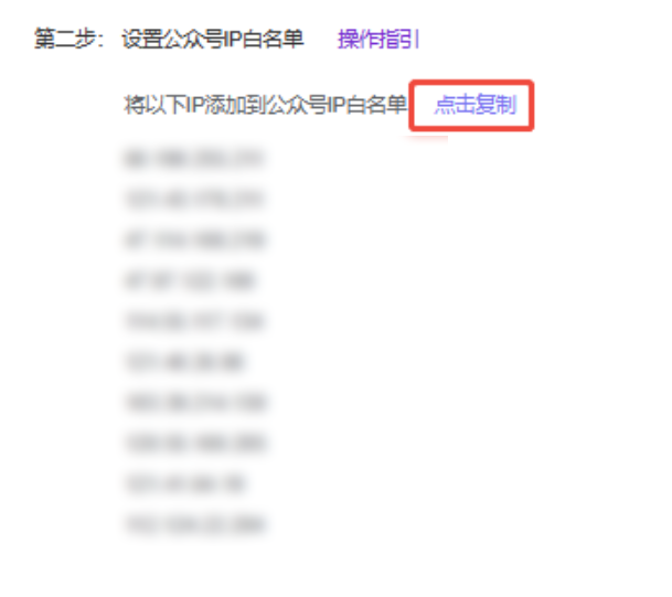 第二步,回到微信开发者平台,添加API IP白名单,从站点营销枢纽后台获取站点所在服务IP,然后添加到微信开发者后台的授权IP 白名单列表。这样就完成关联 IP 白名单设置。